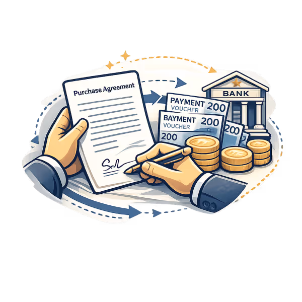 The moment everything becomes official. Once due diligence is complete, you sign the purchase agreement and your bank processes the payment vouchers required in Israel. We guide you through every step.